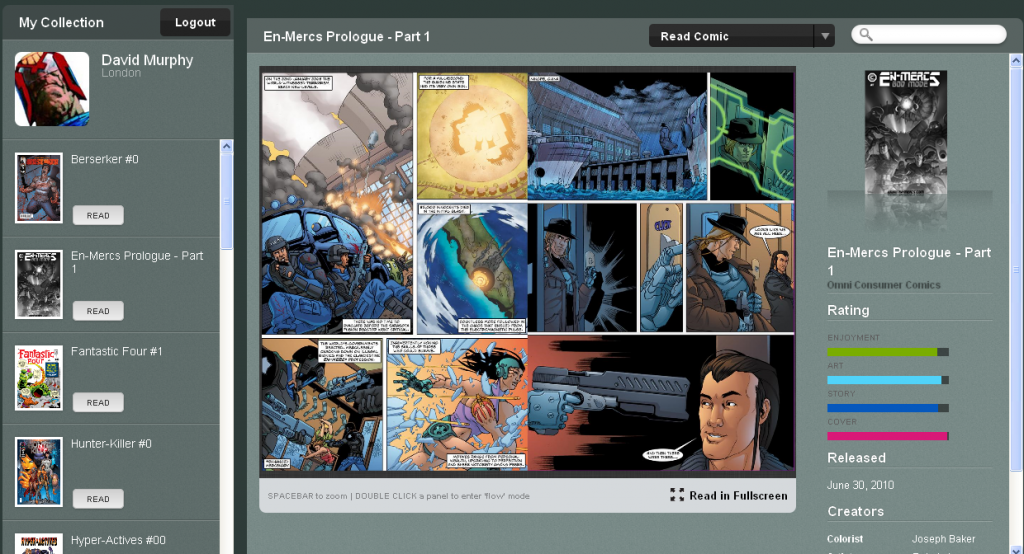Graphicly logoGraphic.ly, the digital distributor of En-Mercs, has just released the web browser version of their comic reader, making it and En-Mercs more accessible to a much wider market. Just click here to start reading issue #1 now!